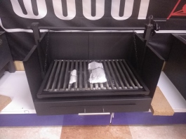 - Soporte para la tapa, que hace que cuando estemos usando la chimenea nos sirva de protección del viento y como deflector de calor.