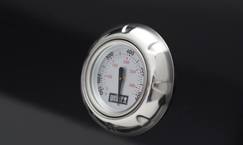 Barbacoa gas con cuba de aluminio colado y tapa de acero vitrificado con termómetro integrado.