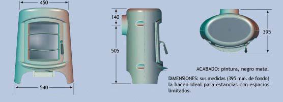 Una creación en la que se combinan carácter vanguardista de su diseño con su sólido acabado de fundición, lo que permite a su vez armonizar perfectamente tanto con ambientes modernos como rústicos. Moderna, sobria en sus formas, fácil de manejar. Un producto en el que el confort, la seguridad y la simplicidad de manejo se unen para proporcionar a los usuarios las máximas garantías para disfrutar de ésta extraordinaria estufa.