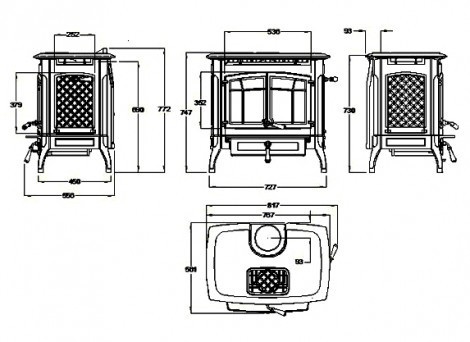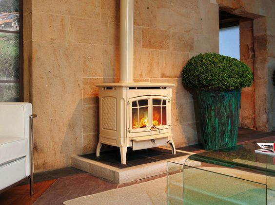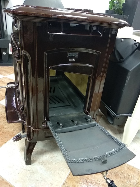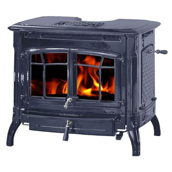 Dispone asimismo de puertas de carga frontal y lateral, lo que le permite carga fácil y sencilla del combustible. Su gran superficie acristalada permite una excelente visión del fuego.