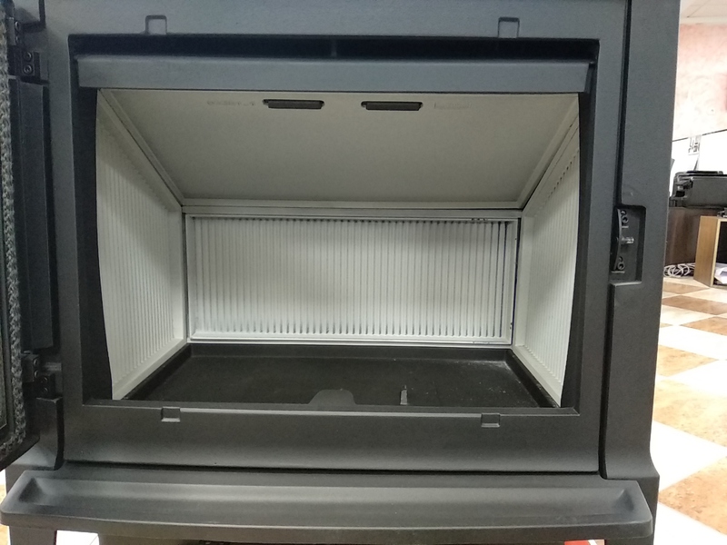 • Placas interiores del hogar y deflector en fundición esmaltada en blanco.