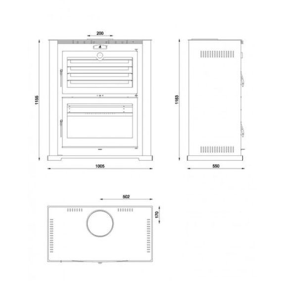 Estufa de leña HL-200 con horno fabricada en chapa de acero de hasta 4 mm, con el horno en chapa de acero inoxidable desmontable para una mejor limpieza.