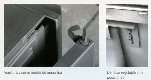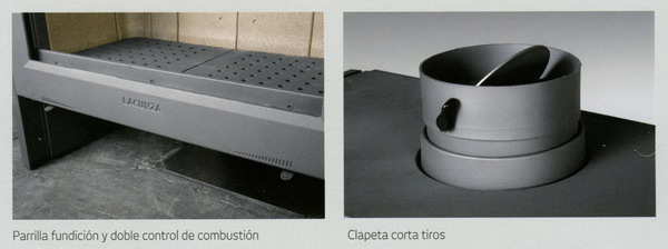 La estufa Leon es una potente estufa de fundición de gran poder calorífico e inercia térmica de hierro fundido con interior en vermiculita, base con parrilla de fundición y cajón cenicero. Sistema de doble combustión.