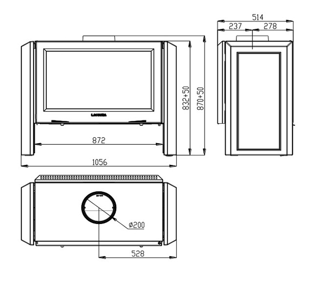 DIMENSIONES EXTERIORES : 1056 ancho x 870 alto x 514 fondo