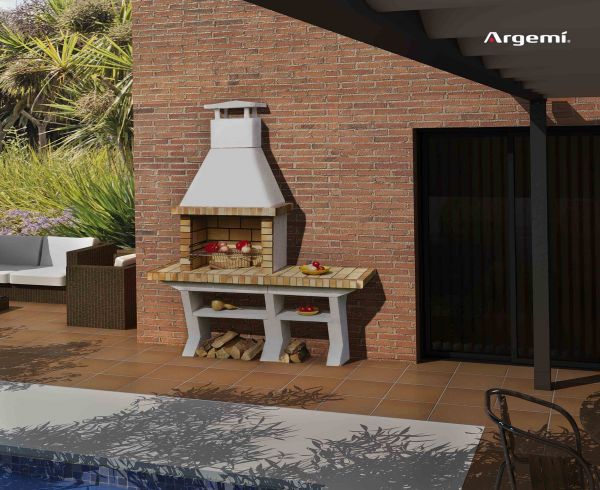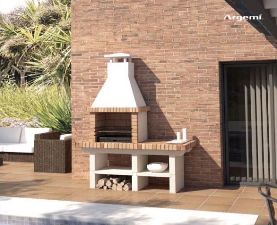 - Encimera y mesas laterales en ladrillo refractario